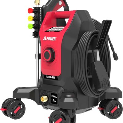 A-iPower Follow Me Electric Pressure Washer 2800 Max PSI 1.7 GPM Anti-Tipping Design with 5 Nozzles, Soap Dispense for Fences, Driveways, Patios, Cars, Home Cleaning, E2800-FM