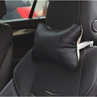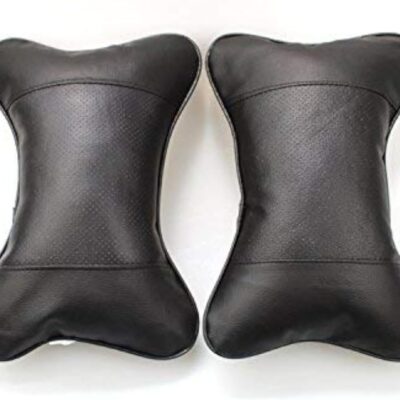2PCS Leather Car Seat Pillow Breathable Car Head Neck Rest Cushion Headrest Auto Car Safety Pillow Neck Pillow (Black)