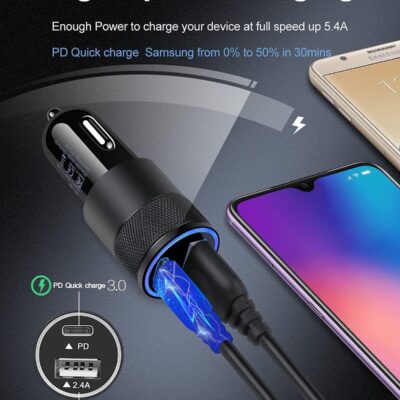AILKIN 30W PD USB C Car Charger, USB Type C Fast Power Charging Block Dual Port USB A & USBC Plug Cargador Carro Lighter Adapter for iPhone, iPad, Samsung Galaxy, LG, Google Pixel, Moto, USB-C Port
