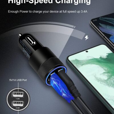 Car Charger, [2Pack/3.4a] Fast Charge Dual Port USB Cargador Carro Lighter Adapter for iPhone 15 14 13 12 11 Pro Max X XR XS 17 Plus 16, iPad, Samsung Galaxy S23 S22 S21 S25 Plus S7 j7 S10e S9 Note 8