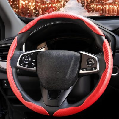 3 Pcs Carbon Fiber Car Steering Wheel Cover, Anti-Skid & Scratch-Proof,Segmented, Butterfly Thin Steering Wheel Cover Men/Women Universal Fit 14.5″-16″ Wheel Covers for Cars/Truck/SUV