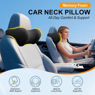 2-Pack Car Neck Pillow: Ergonomic Memory Foam Car Headrest Pillow, Neck Support Pillow for Long Drives, Headrest Support Cushion for Pain Relief, Universal Fit for Cars, SUVs & Trucks – Black