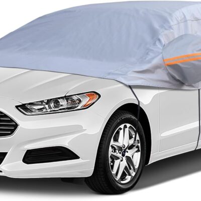 Half Car Cover Top, Windshield & Sunroof Cover for Ice and Snow with Cotton Liner, Car Cover Waterproof All Weather for Snow, Sun, Rain, Dust, UV Protection Fit Sedan Universal