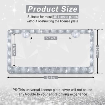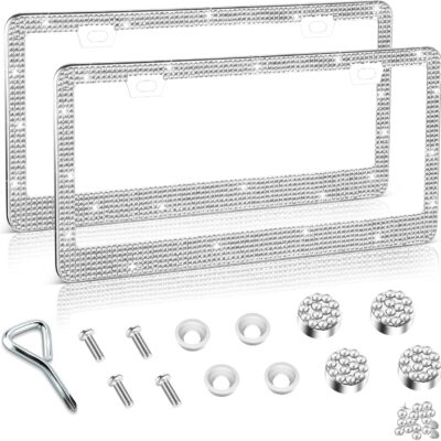 Amiss Bling License Plate Frame for Women, 2Pack Rhinestone Handcrafted Crystal Premium Stainless Steel, Stainless Steel Car Accessories with Diamond Sparkle Glitter Caps (White)