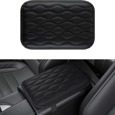 Amiss Auto Center Console Pad, Universal Waterproof Car Armrest Seat Box Cover, Car Interior Accessories, Leather Auto Armrest Cover Protector for Most Vehicle, SUV, Truck (Black)