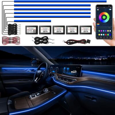 Acrylic Interior Car LED Strip Light with Wireless APP, RGB 6 in 1 & 175 inches 593 LEDs,Car Ambient Lighting Kits Sound Active Function Music Sync LED Strip for Car Accessories