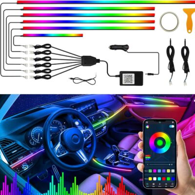 Interior Car LED Strip Lights, Acrylic LED Lights for Car with Wireless APP Dynamic Dreamcolor Chasing 6 in 1 Ambient Lighting Kits, 175 inches 593 LED Sound Active Function Neon Lights