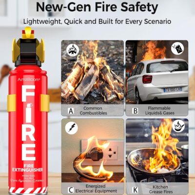 Fire Extinguisher for Home 1Pack, Kitchen, Car, and Grill,Compact Water-Based A, B, C, K Extinguisher with 6-Year Warranty and Easy Storage.