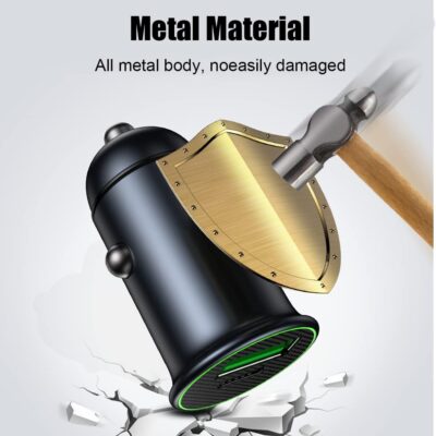 USB-C Car Charger Adapter, Dual Ports Fast Charging PD 60W + QC3.0 30W Mini All-Metal Cigarette Lighter USB Charger Universal for iPhone13/Pro Max/12/XS Max/11 Pro, Samsung, Car Accessories