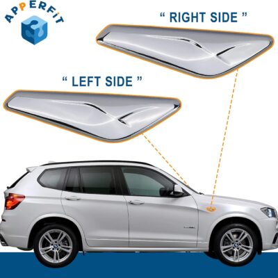 Front Fender Chrome Trim Finisher for Left Driver & Right Passenger Side Fender Compatible with BMW X3 F25 X4 F26 2011 2012 2013 2014 2015 2016 2017 Replaces 51117338569 51117338570