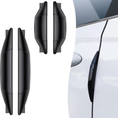 4 PCS Car Door Anti-Collision Strip, Rearview Anti-Impact Sticker, Door Protection Decorative Covers, Door Edge Bumper Guard, Universal Car Side Door Edge Protector (Black)