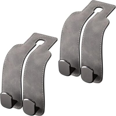 Car Seat Back Double Hook, Car Headrest Hook for Purses and Bags, Durable Hanging Hooks for Handbags, Groceries, and Accessories, Tidy Car Organizer (Grey*2)