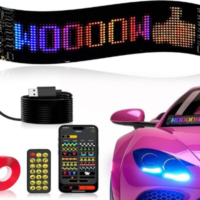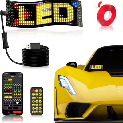 2026 Upgrade Custom LED Sign for Car, DIY LED Eye for Car Windows, Flexible Programmable U-BER Sign Bluetooth App & Remote Control Custom Text Messages Huge Bright Advertising Signs (7” x 3”)