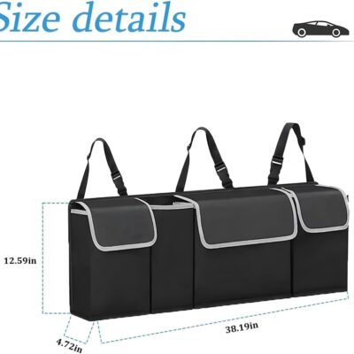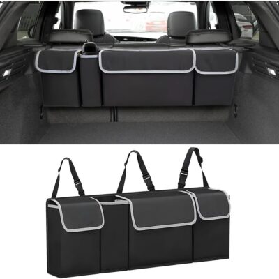 AUCELI Car Trunk Organizer, Backseat Hanging Large Storage with Adjustable Straps, Waterproof Collapsible Cargo Bag with 4 Pockets, Sturdy Space Saver Frees Trunk Floor for SUV, Truck, MPV