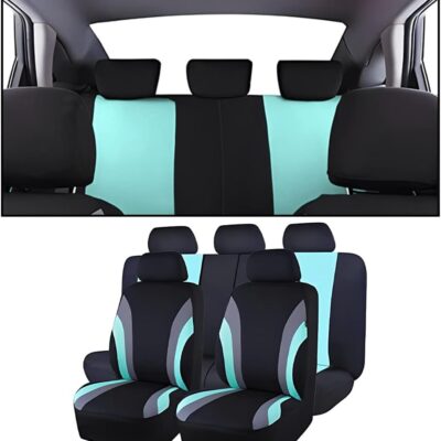 AUCELI Car Seat Covers Full Set, Breathable Front and Rear Seat Covers with 2mm Composite Sponge Inside, Premium Cloth Automotive Seat Cushion Protectors Covers for Most Cars (Green)