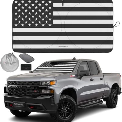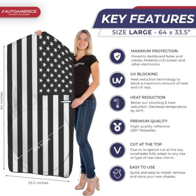 Autoamerics 1-Piece Windshield Sun Shade B&W American Flag USA Patriotic Design – Foldable Car Fits Easily to SUV & Truck Vehicles UV Ray Blocker Keeps Your Vehicle Cool Large