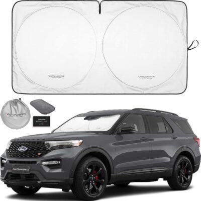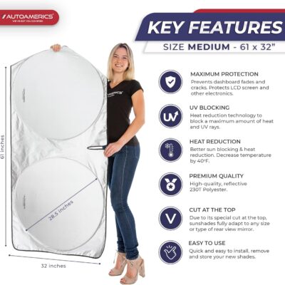 Autoamerics 1-Piece Windshield Sun Shade Standard Silver Foldable Car Front Window Sunshade for Most Cars SUV Truck – Heat Blocker Visor Protector Blocks Max UV Rays and Keeps Your Vehicle Cool Medium