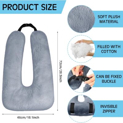 Barydat 2 Pcs Car Travel Pillow for the Back Seat 28 x 18 in Sleeping Reading Pillows for Long Distance Travel Car Cushion for Kids Adults Head and Body Support U Shaped Pad for Travel(Gray, Blue)