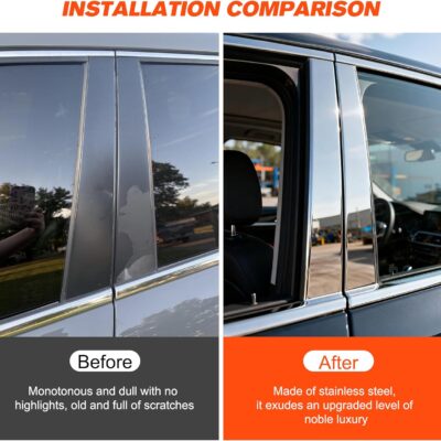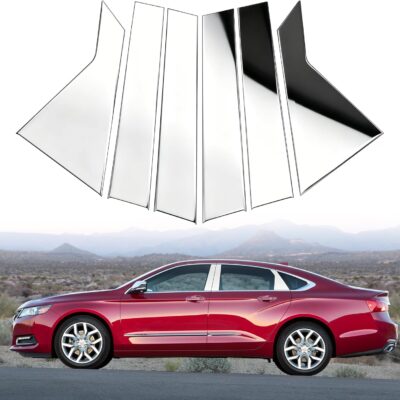 BASIKER Silver Door Pillar Trim Compatible with 2014-2020 Chevy Impala Accessories Stainless Steel Chrome Window Molding Trim (6pcs)