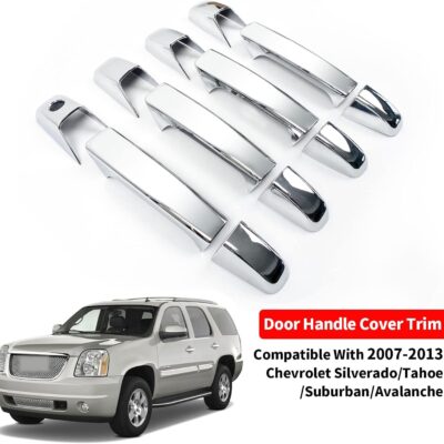 Chrome Door Handle Covers Trim Compatible with Chevrolet Silverado Tahoe Suburban Avalanche 2007-2013 GMC Yukon Sierra 2007-2014 Escalade 2007-2014 for 4 Doors Without Passenger Keyhole