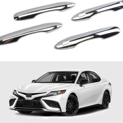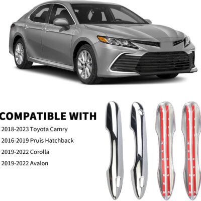 Door Handle Cover Trim Compatible with Toyota Camry 2018-2025 /Corolla 2019-2025 /Avalon 2019-2022 /Pruis Hatchback 2016-2024 Accessories Exterior Door Handle Protector with 2 Smart Key Holes Chrome