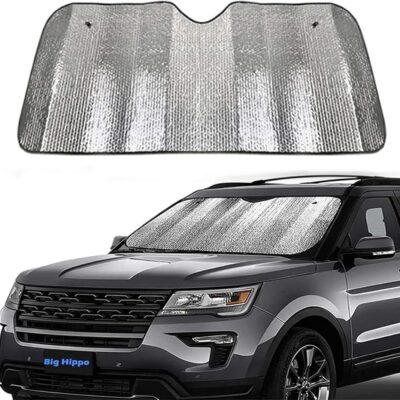 Big Hippo Car Windshield Sun Shade-Jumbo/Standard Car Window Shades Keeps Vehicle Cool-Front UV Ray Protector Sunshade-Easy to Use Sun Shade-Silver(55.16″X 27.5″)