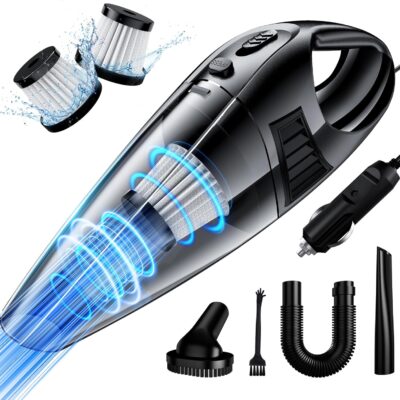 Handheld Car Vacuum Cleaner with 8000PA Powerful Suction, Portable Car Vacuum Cleaner with 2 Filters, Mini Brush, Lightweight, 0.34L Capacity, Essential Accessories