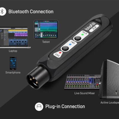 XLR Portable Bluetooth v5.1 Music Receiver, aptX HD aptX Low Latency AAC SBC TWS, Rechargeable Battery 10hrs Long Playtime, USB-C DAC for Mixing Console Desk, Audio Mixer, PA DJ System