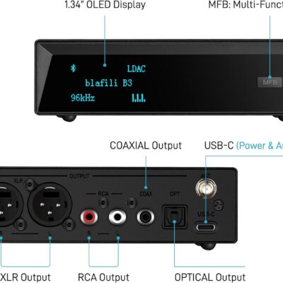 B3 Professional XLR Bluetooth v5.1 Music Receiver, LDAC & aptX HD Streamer, Built-in ESS DAC, Analog RCA, Digital Optical and COAXIAL Outputs, for Audio Mixer, DJ Speakers & PA System