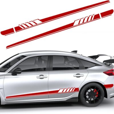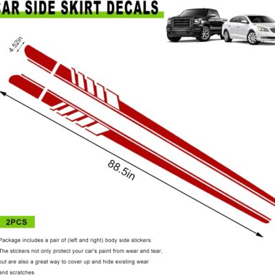 2 PCS Car Side Skirt Decals, 88.58″×4.52″ PVC Racing Sports Stickers Waterproof Body Decoration, Personalized Long Stripes Sticker Creative Side Door Decals for Car Truck SUV (Red)