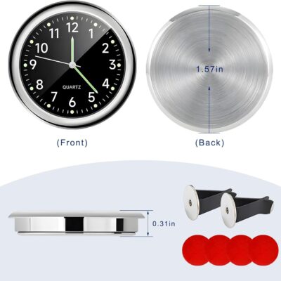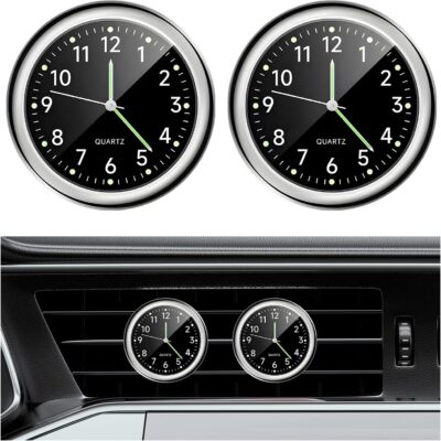 2PCS Stick on Dashboard Car Clock, Mini Luminous Automotive Vent Clip Quartz Clocks, Alloy Waterproof Analog Clock Watch Universal for Car Boat Bike Home, Interior Car Accessories (Black+Black)
