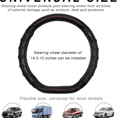 Car Steering Wheel Cover, 15 Inches Leather Comfy Grip Steering Wheel Protector with 3D Honeycomb, Anti-Slip D-Shaped Wheel Wrap Cover for Most Vehicles, Car Accessories (Black)