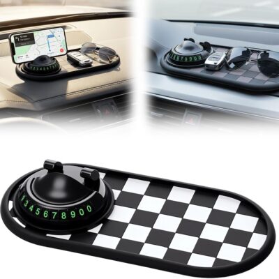 Mobile Phone Bracket Anti-Slip Mat, Car Anti Slip Mat Phone Holder for Dashboard, Multifunction Car Dashboard Mat with Temporary Parking Number for Phones, Sunglasses and Keys Gadget (Black White)