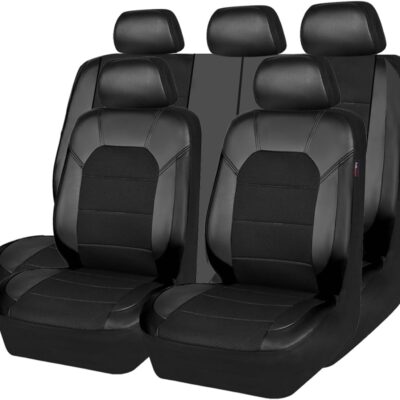 CAR PASS Leather and 3D Air Mesh Universal Fit Car Seat Covers, for Sedans,Trucks,Suvs,Airbag Compatible,Zipper Design and Reserved Opening Holes for Headrest(Full Set, Black and Black)