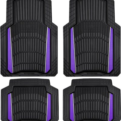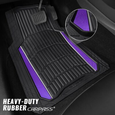 CAR PASS Heavy Rubber Car Floor Mats, Deep Waterproof Car Floor Mats All Weather, Aluminum Film Universal Trim to Fit for Cars SUV Trucks Sedans, Anti-Slip, Black Purple Metallic