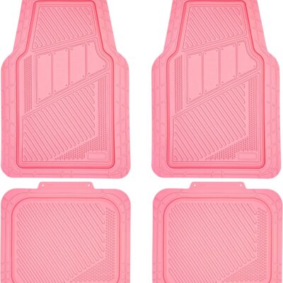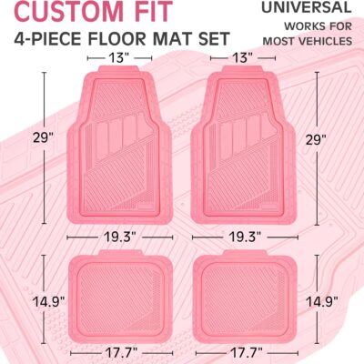 CAR PASS Heavy Duty Rubber Floor Mats 4-Piece,Pink Car Mats Full Sets Anti-Slip,Waterproof Universal Trim-to-Fit for Car SUV Truck, Durable All Weather Automotive Car Mats for Women,Girly(All Pink)
