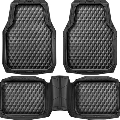 CAR PASS Heavy Duty Rubber Car Mats, Deep Dish All-Weather Floor Mat for Car Full Set Durable Anti-Slip 3D Rhombus Waterproof Trim to Fit Liner Universal Fit Automotive,Sedan,SUV,Truck, 3 Piece Black