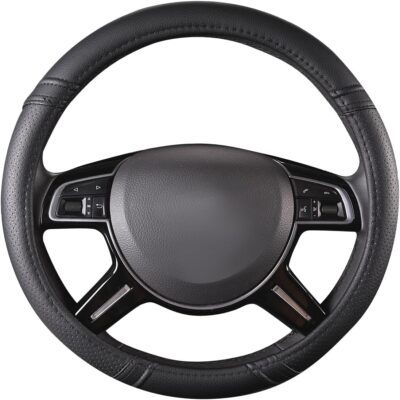 Car Pass Classical Leather Automotive Universal Steering Wheel Covers,Universal Fit for Suvs,Trucks,Sedans,Cars,Vans,14.5-15inch Anti-Slip Safety Comfortable Desgin(Black)