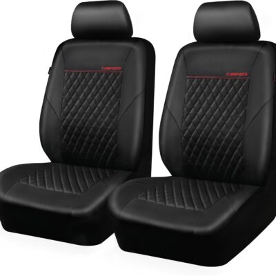 CAR PASS Leather Car Seat Covers Front Seats Only, with Air Mesh Front Seat Covers Breathable, Cool Automotive Seat Covers 2 Pack, Universal Fit Most Cars,SUV,Truck,Van Airbag Compatible(Black & Red)
