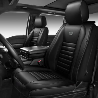 CAR PASS Piping Luxury Faux PU Leather Two Front Car Seat Covers, Waterproof Anti Slip Seat Covers Compatible with Front Seat Armrests,Universal Fit for Suvs,Vans,Trucks, Airbag Compatible(All Black)