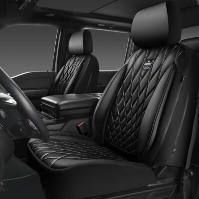 CAR PASS Nappa Leather Car Seat Covers Front Seats, Luxury Seat Protector for Cars, Waterproof Anti-Slip Seat Cushion Airbag Compatible Universal for Sedan SUV Pick-up Truck Automotive Vehicle, Black