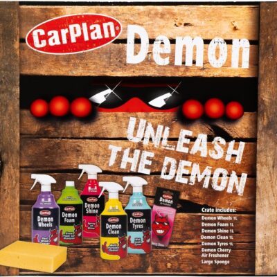 CarPlan Demon Car Wash Kit – 7 Piece Set Includes Car Wash Soap, Wheel Cleaner, Tire Shine, Interior Cleaner, Demon Shine, Air Freshener & Sponge