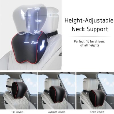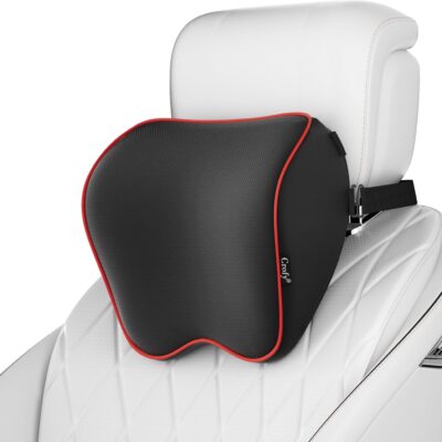 Crofy 2 Pack Car Neck Pillow, Softness Car Headrest Pillow for Driving with Adjustable Strap, 100% Memory Foam and Breathable Removable Cover, Comfortable Ergonomic Design (Red Side Rope)