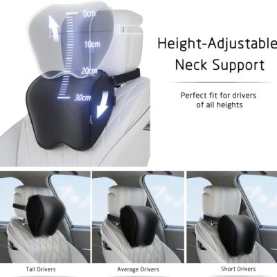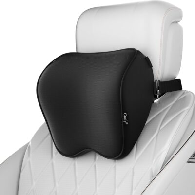 Crofy 2-Pack Car Neck Pillow, Softness Car Headrest Pillow for Driving with Adjustable Strap, 100% Memory Foam and Breathable Removable Cover, Comfortable Ergonomic Design (Black Side Rope)