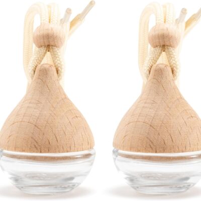 Refillable Car Air Freshener Hanging Diffuser, Empty Glass Bottle with Reed Sticks for Essential Oils, Car Scent Diffuser and Aromatherapy Pendant Decor for Women and Men, 2 Pack