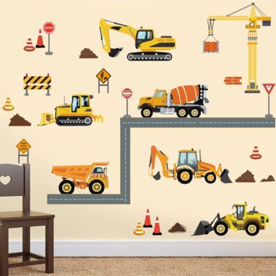 decalmile Construction Vehicles Wall Decals Trucks Tractor Cars Wall Stickers Baby Boys Bedroom Kids Playroom Wall Decor