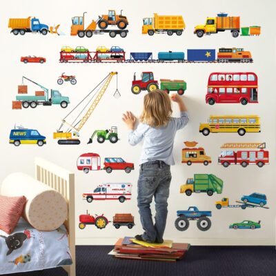 decalmile Cars Wall Stickers Transports Kids Room Wall Decor Peel and Stick Wall Decals for Boys Children’s Room Nursery Bedroom Classroom
