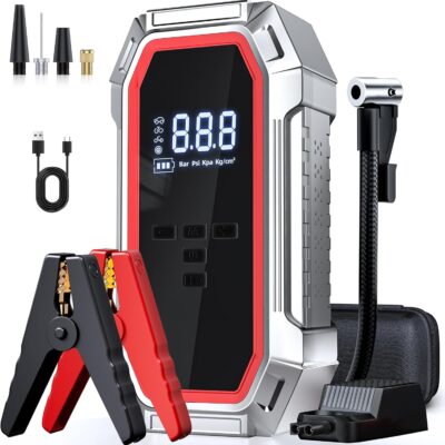 Jump Starter with Air Compressor, 5000A Peak Car Battery Jump Starter(9.0 Gas/8.0L Diesel), 160PSI 12V Jump Box Car Battery Jumper Starter Portable with Smart Jumper Cables, LED Lights, LCD Display