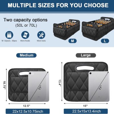 Deosk Car Trunk Organizer for SUV, Car Organizers and Storage with 6 Pocket, Car Accessories for Women/Men 50LWaterproof Polyester Trunk Organizer, Black