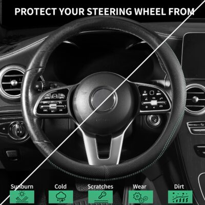Steering Wheel Cover, Universal 15 inch, Faux Leather Steering Wheel Protector, Anti-Slip, Breathable & Heating-Compatible for Cars Trucks SUVs Vans
